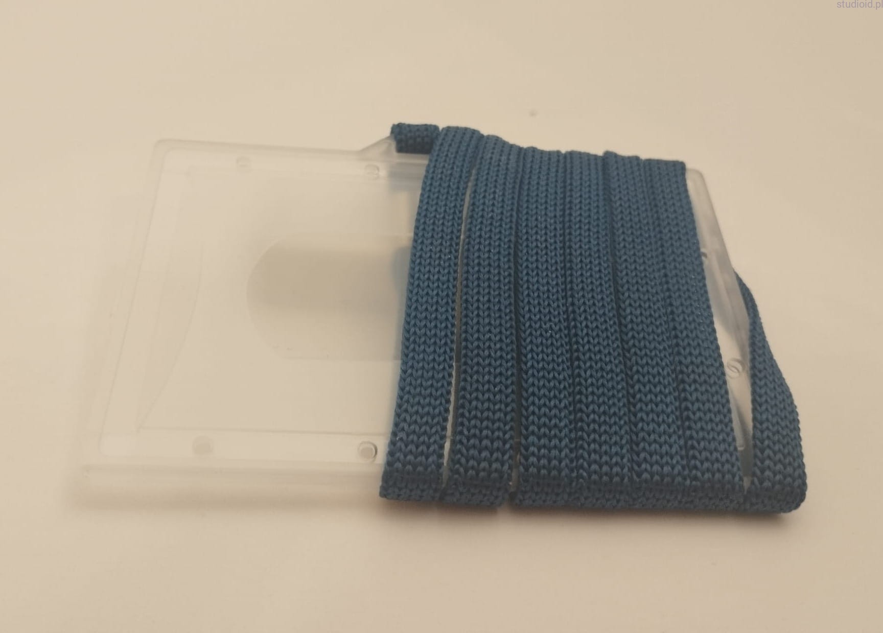 Holder poziomy przezroczysty na kartę/identyfikator plastikową lub zbliżeniową zintegrowany z zawieszką 1 cm na szyję (smycz) bez nadruku.